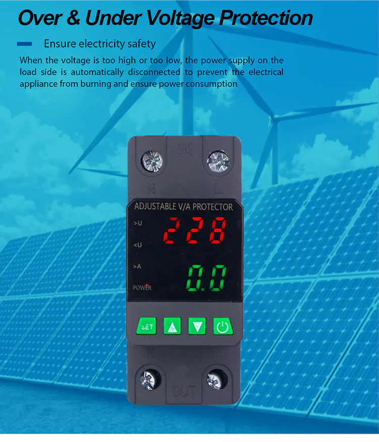 Equipado com uma tela digital e fabricada com componentes eletrônicos modulares importados, possui alta confiabilidade e desempenho. O protetor corta automaticamente e rapidamente a fonte de alimentação durante tensões anormais (como sobretensão, subtensão ou flutuações da grade) e restaura a fonte de alimentação após o retorno da tensão ao normal.