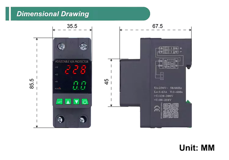 4.O relé protetor de tensão de 2 polos apresenta um design modular para facilitar a instalação da faixa, melhorando sua aparência e funcionalidade.
