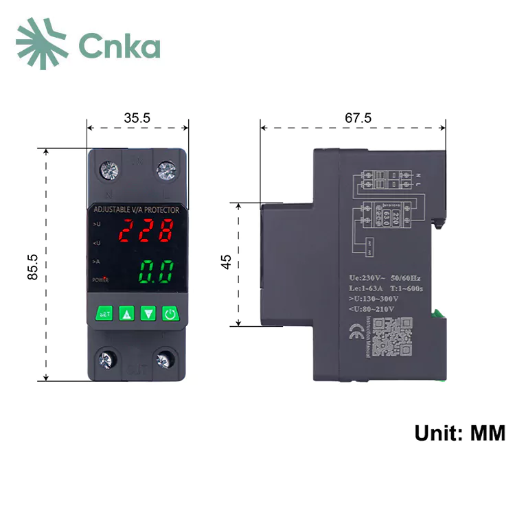A CNKA é um conhecido fornecedor chinês que fornece no atacado do relé de protetor de tensão de 2 pole de sua marca. Esses dispositivos são projetados especificamente para circuitos AC 220V, 50Hz, com uma corrente nominal de 63A, tornando-os uma escolha ideal para proteger caixas de distribuição residencial ou fios que fornecem energia para equipamentos monofásicos.