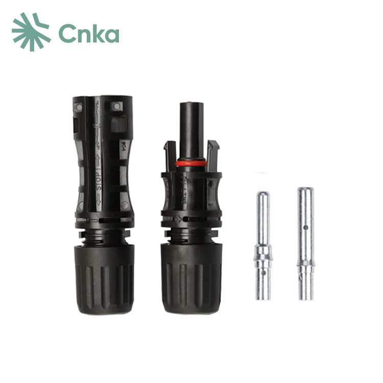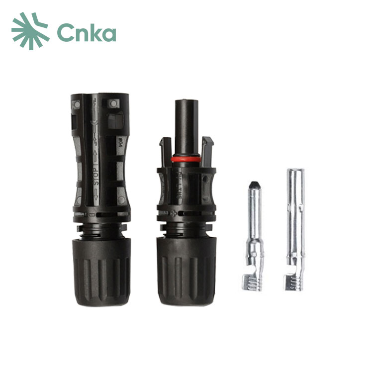 Fornecedores chineses A CNKA oferece conectores de cabos para painéis solares fabricados na China que são totalmente compatíveis com sistemas fotovoltaicos de 1500V. Esses conectores são divididos em duas partes: a extremidade da linha e a extremidade da placa. Normalmente, quando nos referimos aos conectores de cabos do painel solar, queremos dizer os conectores de extremidade da linha. Eles consistem em peças metálicas e peças de isolamento. O termo MC significa Multi-Contact, enquanto o número 4 indica o tamanho do diâmetro do núcleo metálico.